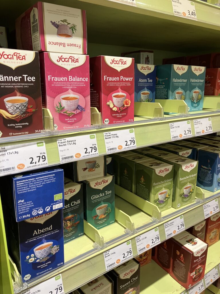 Alnaturaでも他のスーパーでも見かけるが、特にお気に入りは Yogi Tea(ヨギティー)。