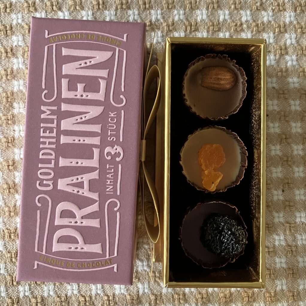 そして、街の象徴ともいえるクレーマー橋。橋の上に小さなお店が連なっていて、歩くだけでも楽しい。その中でも特におすすめしたいのが、手作りプラリーネで人気のチョコレート店 Goldheim。