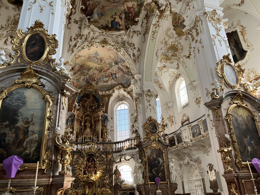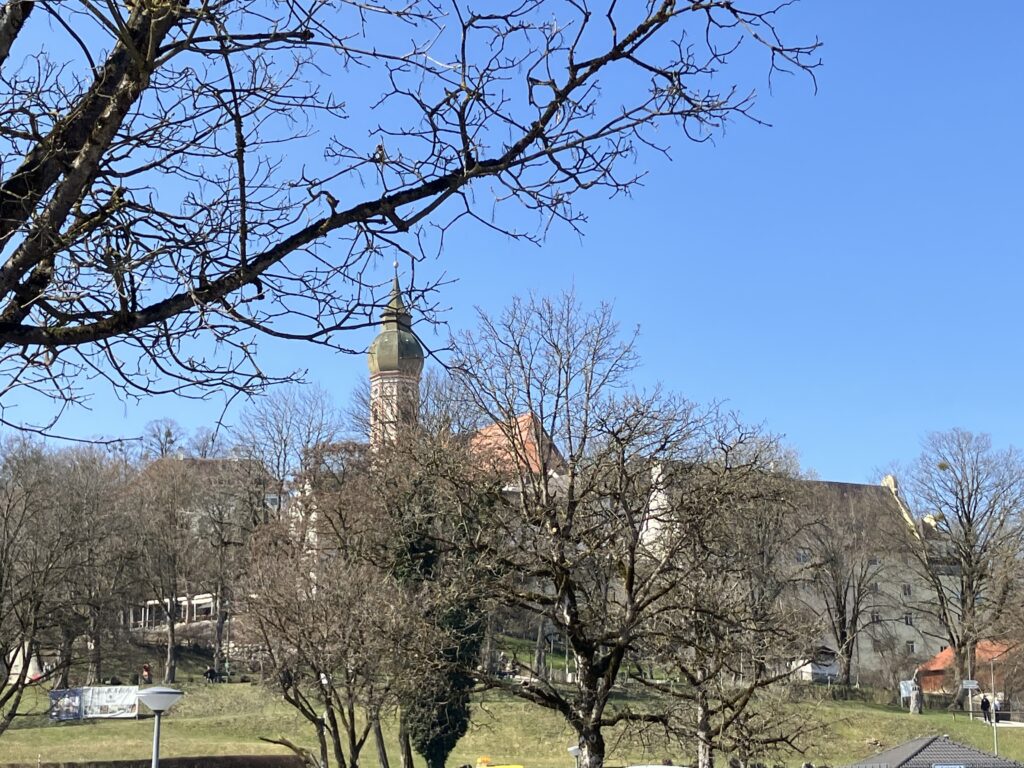 内部の装飾がきれいで、静寂に包まれている。ちなみにここには、ドイツの作曲家カール・オルフ(Carl Orff)が埋葬された地でもある。日本ではCarmina Branaが有名。生前に最後の静寂を求めて礼拝所を訪れていたカール・オルフ。確かに静かで心が落ち着くし、丘の上から眺める景色も最高だ。