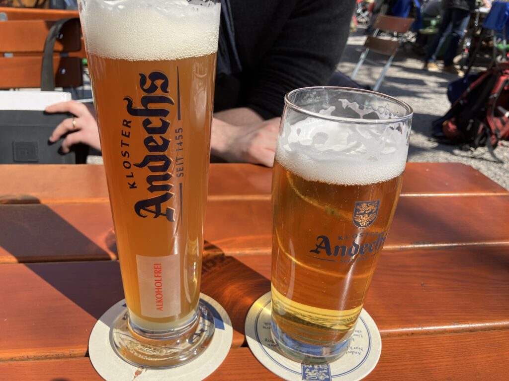 薬局はツアーがないと入れなかったのでパスし、敷地内を散策した後、ビアガーデンへ。今回はKlostergasthof Andechsに向かった。敷地内にはもう一つ別のビアガーデンが併設されている。