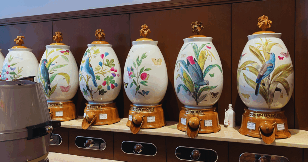 ダルマイヤーと言えばコーヒーも有名だ。REWEなどの通常のスーパーでも、ダルマイヤーのProdomoシリーズが販売されている。ミュンヘンの本店では、他にもスペシャルティコーヒーが販売されており、酸味や苦みなど自分の好みに合わせたコーヒー豆を購入することができる。