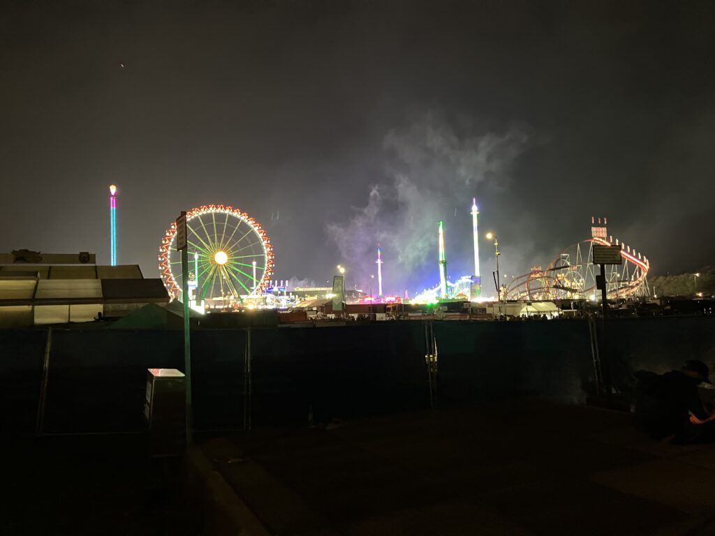 会場内には観覧車やお化け屋敷、ジェットコースター、射撃ゲームなどが並び、子ども連れや観光客が思い思いに楽しんでいる。今回は友人と観覧車に乗ってみたが、1人10ユーロ程度と手頃な価格で、上空からオクトーバーフェスト全体とミュンヘンの街並みを一望できた。
